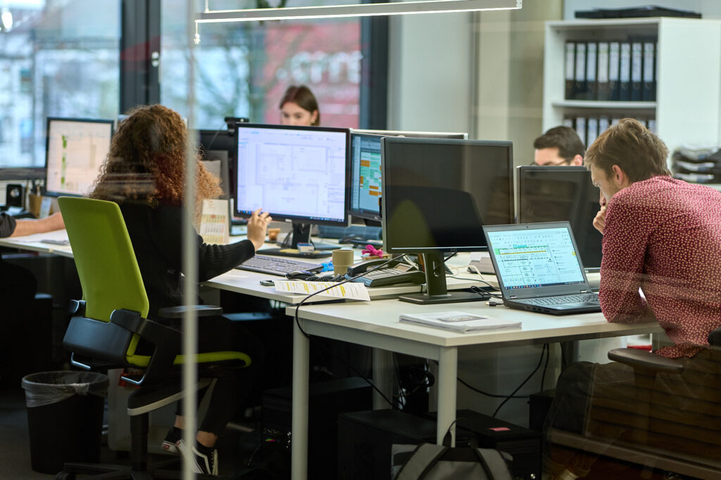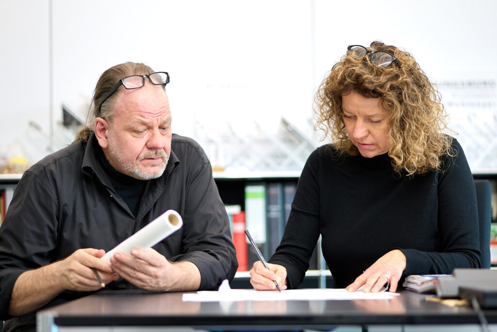 Wir verstehen Architektur als Teamleistung. Von der ersten Entwurfsskizze bis zur Umsetzung begleiten wir unsere Auftraggeber durch alle Leistungsphasen – engagiert, strukturiert und im offenen Austausch miteinander. Dabei legen wir Wert auf eine harmonische Zusammenarbeit mit Bauherren, Handwerkern und Fachplanern – und ebenso auf ein wertschätzendes, kollegiales Miteinander im eigenen Team.